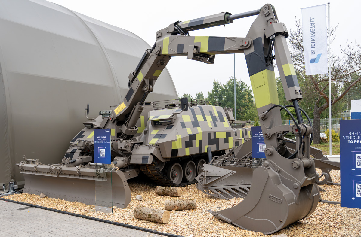 At the Rheinmetall stand, we focused on the AEV3 Kodiak armored engineering vehicle, which the Czech Army is set to acquire in the future as an escort vehicle (along with the BPz3 Büffel armored recovery vehicle and the Leguan bridge system) in connection with the purchase of new Leopard 2A8 tanks.