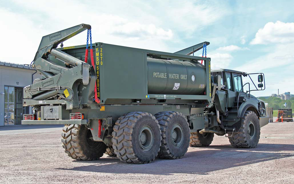 HAMMAR sideloaders are currently used by dozens of armed forces around the world, in various areas of military logistics and individual types of troops. They are used, for example, for unloading other transport vehicles, transporting fuel or water container tanks, mobile kitchens or field hospitals, or as a mobile crane for repairing vehicles in field conditions.