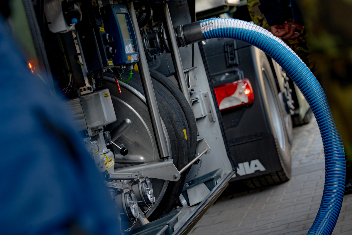 Foto: Souprava je vybavena čerpadlem s výkonem 900 litrů za minutu a umožňuje měřený výdej i sání motorové nafty nebo leteckého petroleje ze všech a do všech komor | kpt. Denisa Píšová